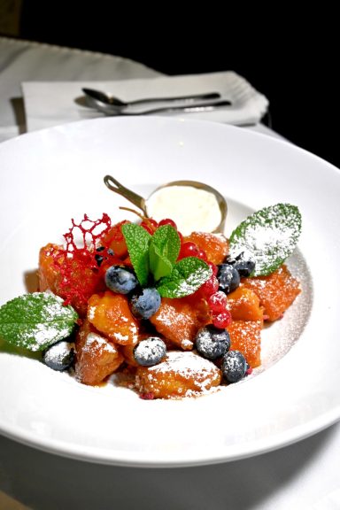 Mit Ihrem historischem und offen liegendem Mauerwerk und elegant gedeckten Tischen ist Sie der perfekte Ort für ein gemütliches Dinner.